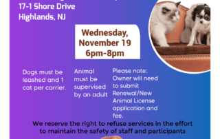 Highlands Rabies Clinic – Wednesday, November 19th, 6pm-8pm. Highlands Firehouse 17-1 Shore Dr. Highlands