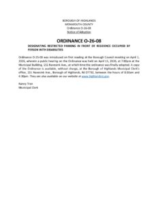 Categories: 2026 Legal Notices, Mayor and Council Legal Notices