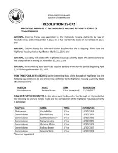 R 25 072 Appointing Highlands Housing Authority Member Download File Type: pdf File Size: 74 KB Categories: 2025 Resolutions Borough of Highlands2025-12-05T07:20:16-05:0012/05/2025|Comments Off on R 25 072 Appointing Highlands Housing Authority Member Share This Story, Choose Your Platform! FacebookXBlueskyRedditLinkedInWhatsAppTelegramTumblrXingEmailCopy Link