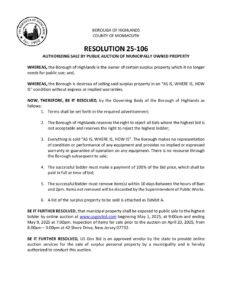 R 25 106 Authorizing Auction Sale of Borough Property Download File Type: pdf File Size: 86 KB Categories: 2025 Resolutions Borough of Highlands2025-12-05T07:20:15-05:0012/05/2025|Comments Off on R 25 106 Authorizing Auction Sale of Borough Property Share This Story, Choose Your Platform! FacebookXBlueskyRedditLinkedInWhatsAppTelegramTumblrXingEmailCopy Link