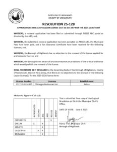 R 25 128 Approving Renewal of Liquor License 1317 33 015 007 for 2025 2026 Term Download File Type: pdf File Size: 67 KB Categories: 2025 Resolutions Borough of Highlands2025-12-05T07:20:15-05:0012/05/2025|Comments Off on R 25 128 Approving Renewal of Liquor License 1317 33 015 007 for 2025 2026 Term Share This Story, Choose Your Platform! FacebookXBlueskyRedditLinkedInWhatsAppTelegramTumblrXingEmailCopy Link