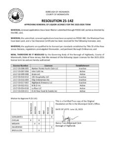 R 25 142 Approving Renewal of Liquor Licenses for 2025 2026 Term Download File Type: pdf File Size: 68 KB Categories: 2025 Resolutions Borough of Highlands2025-12-05T07:20:15-05:0012/05/2025|Comments Off on R 25 142 Approving Renewal of Liquor Licenses for 2025 2026 Term Share This Story, Choose Your Platform! FacebookXBlueskyRedditLinkedInWhatsAppTelegramTumblrXingEmailCopy Link