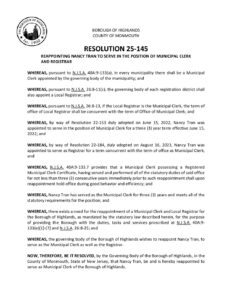R 25 145 Reappointing Clerk Download File Type: pdf File Size: 75 KB Categories: 2025 Resolutions Borough of Highlands2025-12-05T07:20:15-05:0012/05/2025|Comments Off on R 25 145 Reappointing Clerk Share This Story, Choose Your Platform! FacebookXBlueskyRedditLinkedInWhatsAppTelegramTumblrXingEmailCopy Link