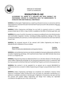 R 25 162 NF&O to Colliers for Frank Hall and Overlook Parks Download File Type: pdf File Size: 80 KB Categories: Resolutions Borough of Highlands2025-11-25T07:57:37-05:0011/25/2025|Comments Off on R 25 162 NF&O to Colliers for Frank Hall and Overlook Parks Share This Story, Choose Your Platform! FacebookXBlueskyRedditLinkedInWhatsAppTelegramTumblrXingEmailCopy Link
