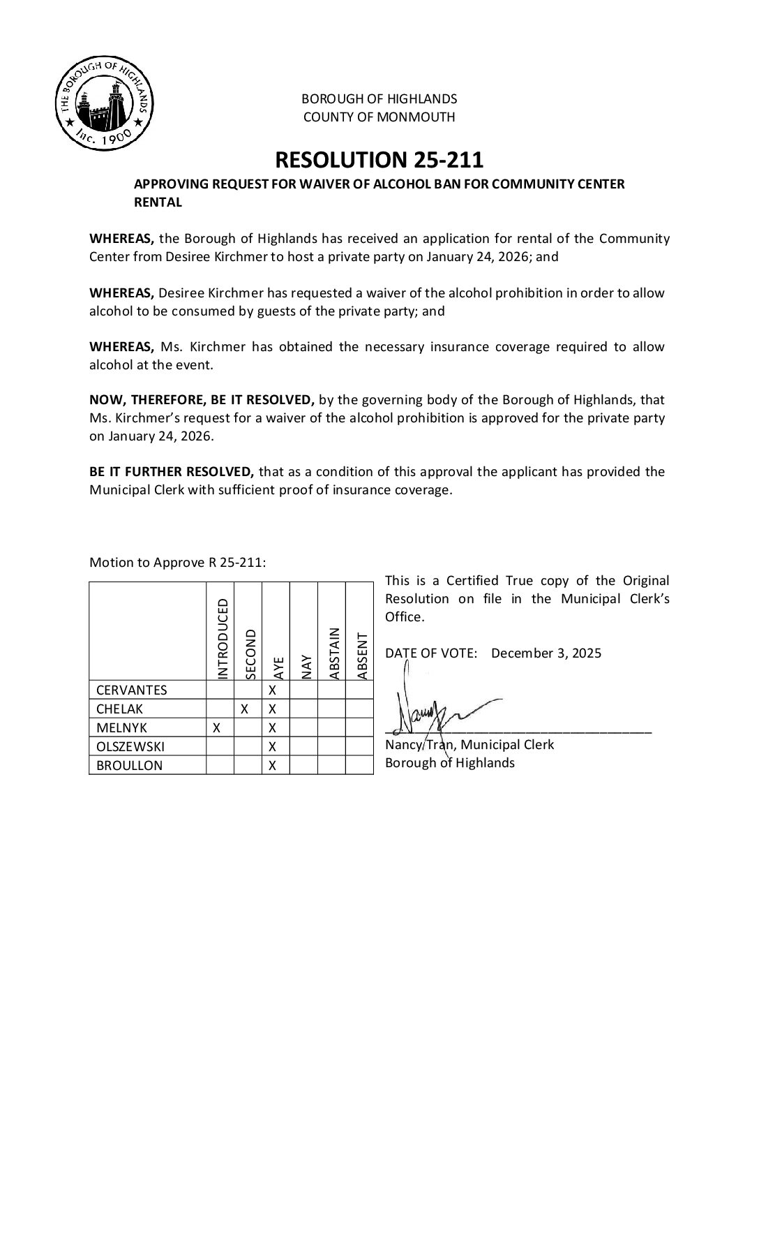 R 25 211 Waiver of Alcohol Ban for Community Center Rental Rec Dept Gallery R 25 211 Waiver of Alcohol Ban for Community Center Rental Rec Dept R 25 211 Waiver of Alcohol Ban for Community Center Rental Rec Dept Borough of Highlands2025-12-05T07:20:14-05:0012/05/2025|Comments Off on R 25 211 Waiver of Alcohol Ban for Community Center Rental Rec Dept Read More