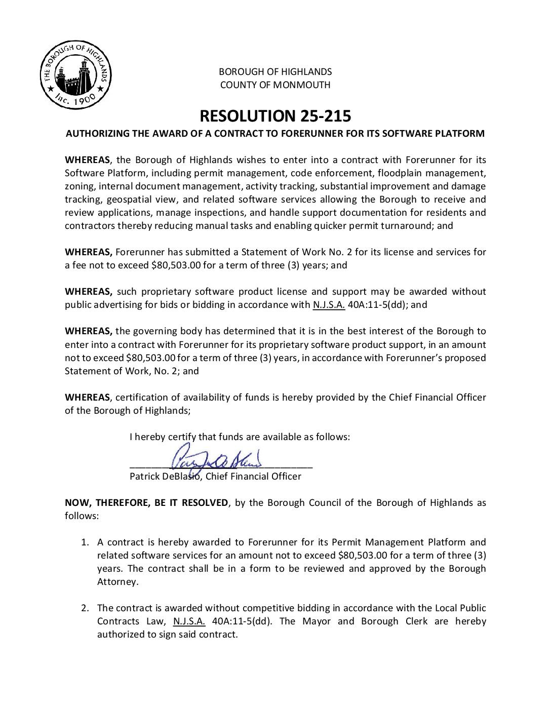 R 25 215 Awarding Contract to Forerunner Gallery R 25 215 Awarding Contract to Forerunner R 25 215 Awarding Contract to Forerunner Borough of Highlands2025-12-05T07:20:14-05:0012/05/2025|Comments Off on R 25 215 Awarding Contract to Forerunner Read More
