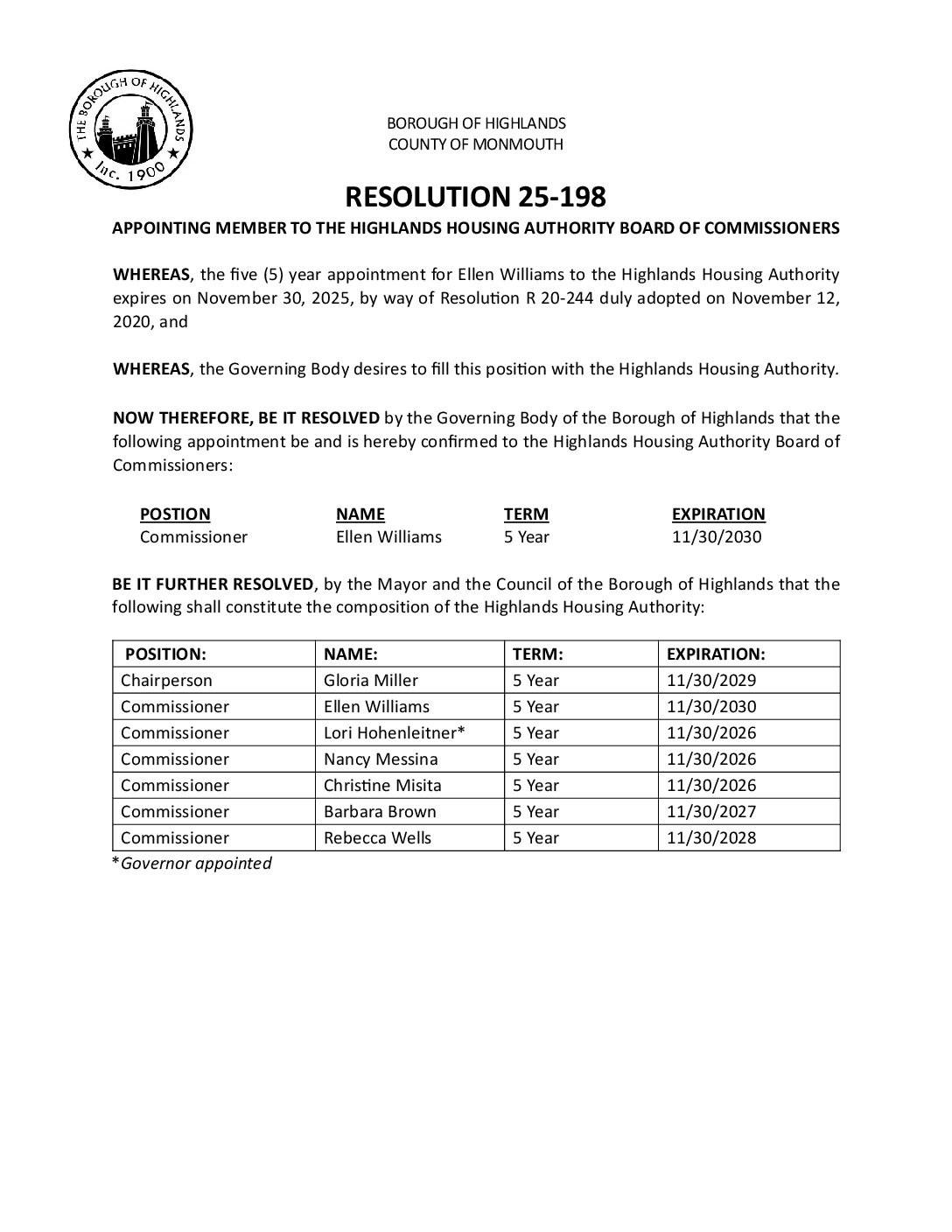 R 25 198 Appointing Housing Authority Member EWilliams Gallery R 25 198 Appointing Housing Authority Member EWilliams R 25 198 Appointing Housing Authority Member EWilliams Borough of Highlands2025-12-05T07:20:14-05:0012/05/2025|Comments Off on R 25 198 Appointing Housing Authority Member EWilliams Read More