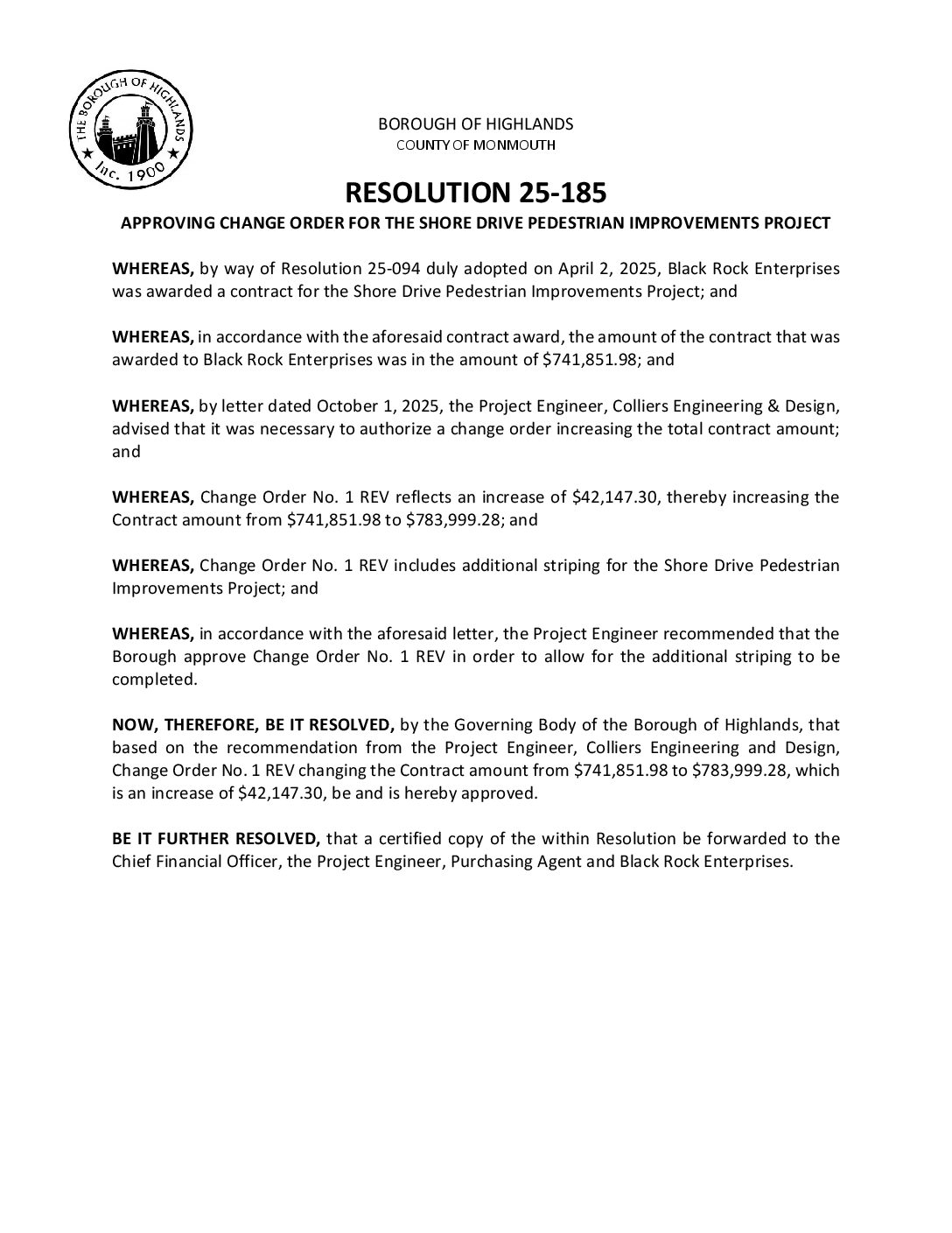 R 25 185 Approving Change Order No. 1 Shore Dr Ped Improvements Gallery R 25 185 Approving Change Order No. 1 Shore Dr Ped Improvements R 25 185 Approving Change Order No. 1 Shore Dr Ped Improvements Borough of Highlands2025-12-05T07:20:14-05:0012/05/2025|Comments Off on R 25 185 Approving Change Order No. 1 Shore Dr Ped Improvements Read More