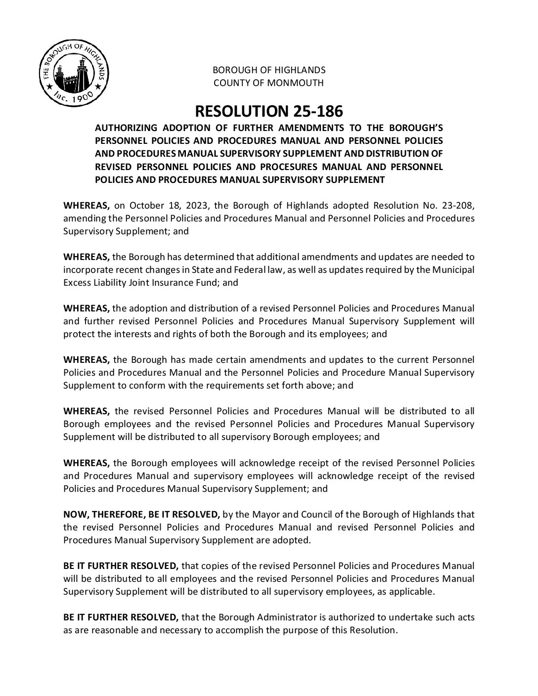 R 25 186 Adopting Personnel Policies and Procedures Manual Gallery R 25 186 Adopting Personnel Policies and Procedures Manual R 25 186 Adopting Personnel Policies and Procedures Manual Borough of Highlands2025-12-05T07:20:14-05:0012/05/2025|Comments Off on R 25 186 Adopting Personnel Policies and Procedures Manual Read More