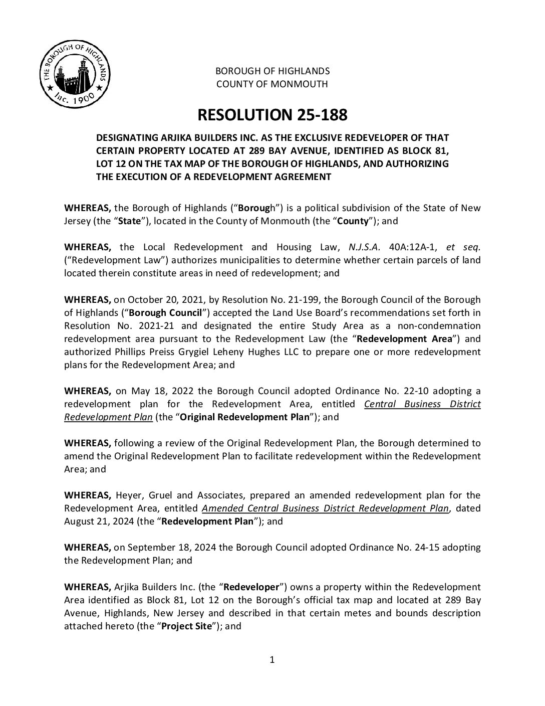 R 25 188 Authorizing Redevelopment Agreement Arjika Gallery R 25 188 Authorizing Redevelopment Agreement Arjika R 25 188 Authorizing Redevelopment Agreement Arjika Borough of Highlands2025-12-05T07:20:14-05:0012/05/2025|Comments Off on R 25 188 Authorizing Redevelopment Agreement Arjika Read More