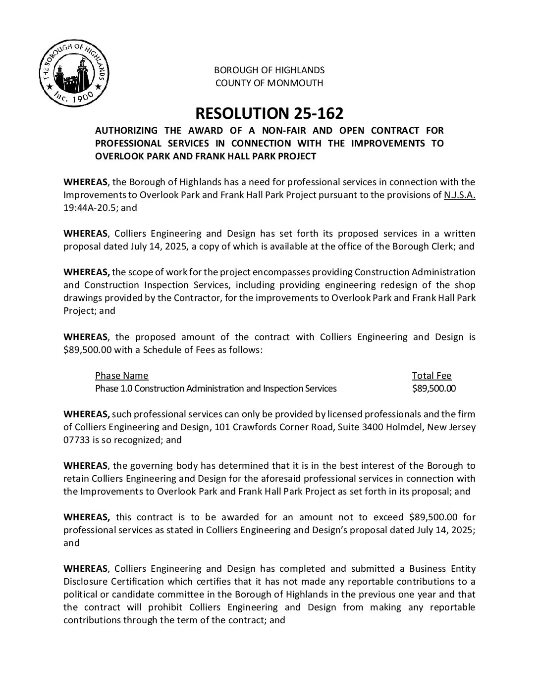 R 25 163 Awarding F&O for Frank Hall and Overlook Parks Gallery R 25 163 Awarding F&O for Frank Hall and Overlook Parks R 25 163 Awarding F&O for Frank Hall and Overlook Parks Borough of Highlands2025-12-05T07:20:14-05:0012/05/2025|Comments Off on R 25 163 Awarding F&O for Frank Hall and Overlook Parks Read More