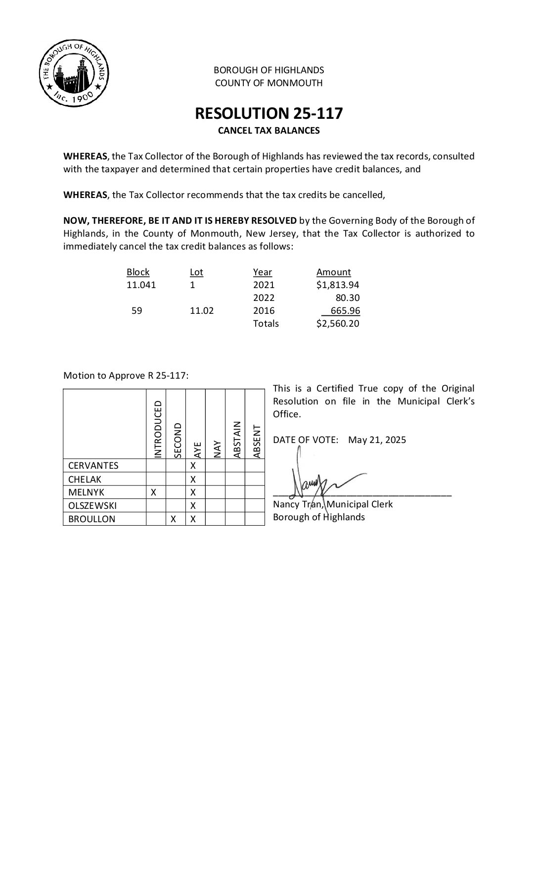R 25 117 Cancel Tax Balances Gallery R 25 117 Cancel Tax Balances R 25 117 Cancel Tax Balances Borough of Highlands2025-12-05T07:20:15-05:0012/05/2025|Comments Off on R 25 117 Cancel Tax Balances Read More