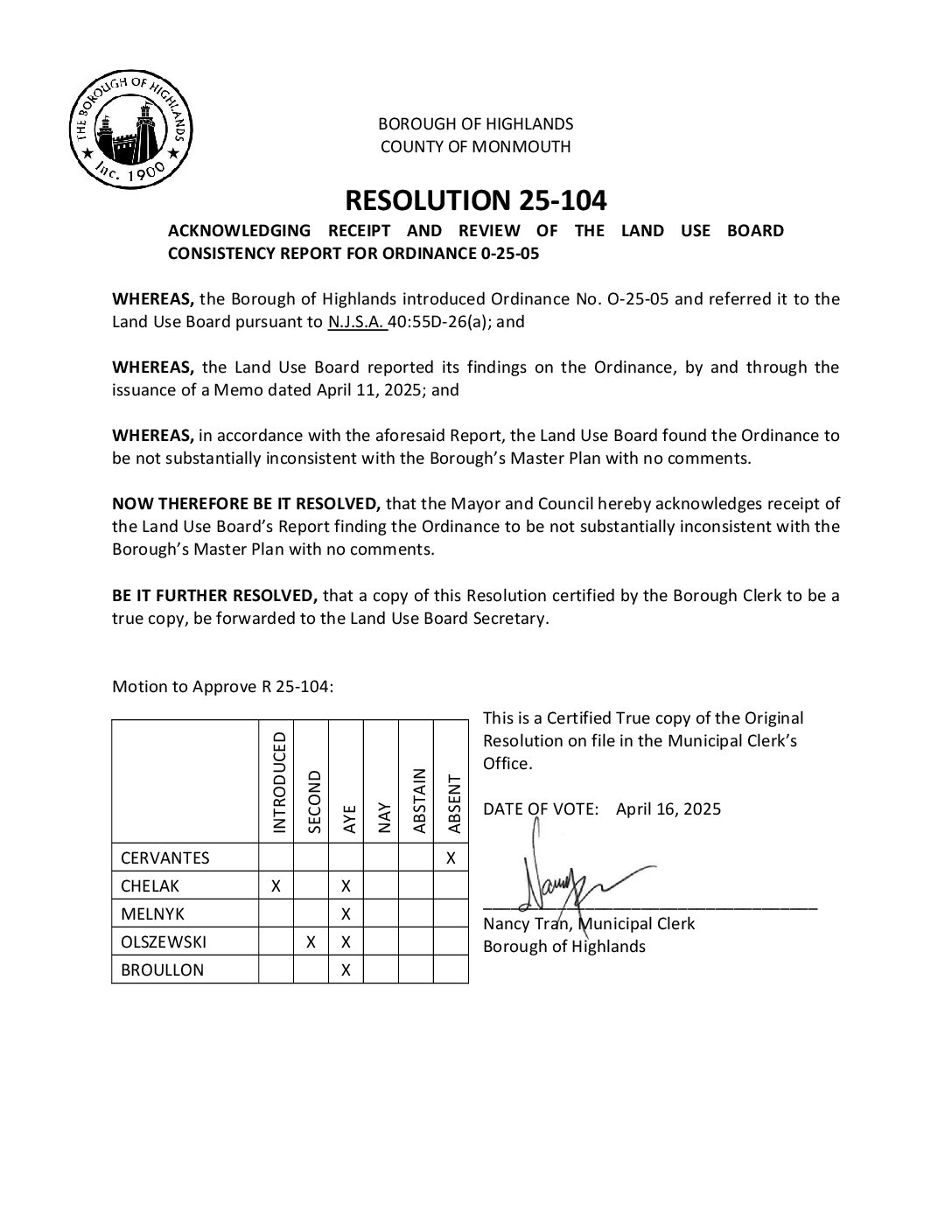 R 25 104 Acknowledging LUB Consistency Report of O 25 05 Gallery R 25 104 Acknowledging LUB Consistency Report of O 25 05 R 25 104 Acknowledging LUB Consistency Report of O 25 05 Borough of Highlands2025-12-05T07:20:15-05:0012/05/2025|Comments Off on R 25 104 Acknowledging LUB Consistency Report of O 25 05 Read More