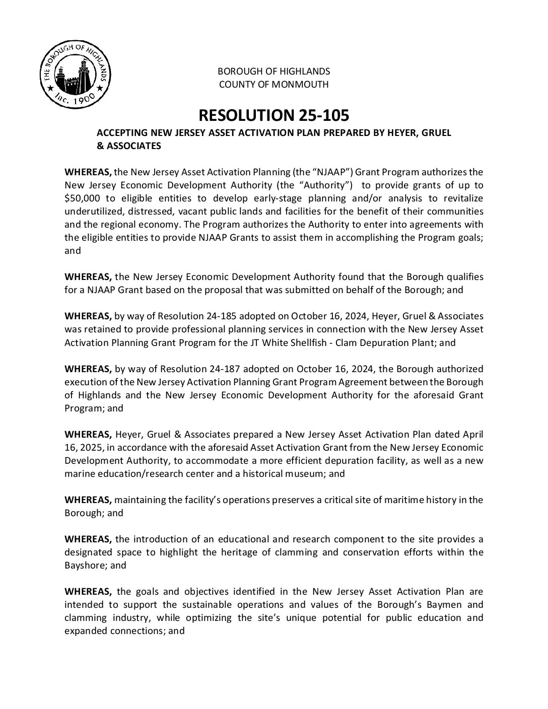 R 25 105 Accepting HGA Plan for Clam Plant Gallery R 25 105 Accepting HGA Plan for Clam Plant R 25 105 Accepting HGA Plan for Clam Plant Borough of Highlands2025-12-05T07:20:15-05:0012/05/2025|Comments Off on R 25 105 Accepting HGA Plan for Clam Plant Read More