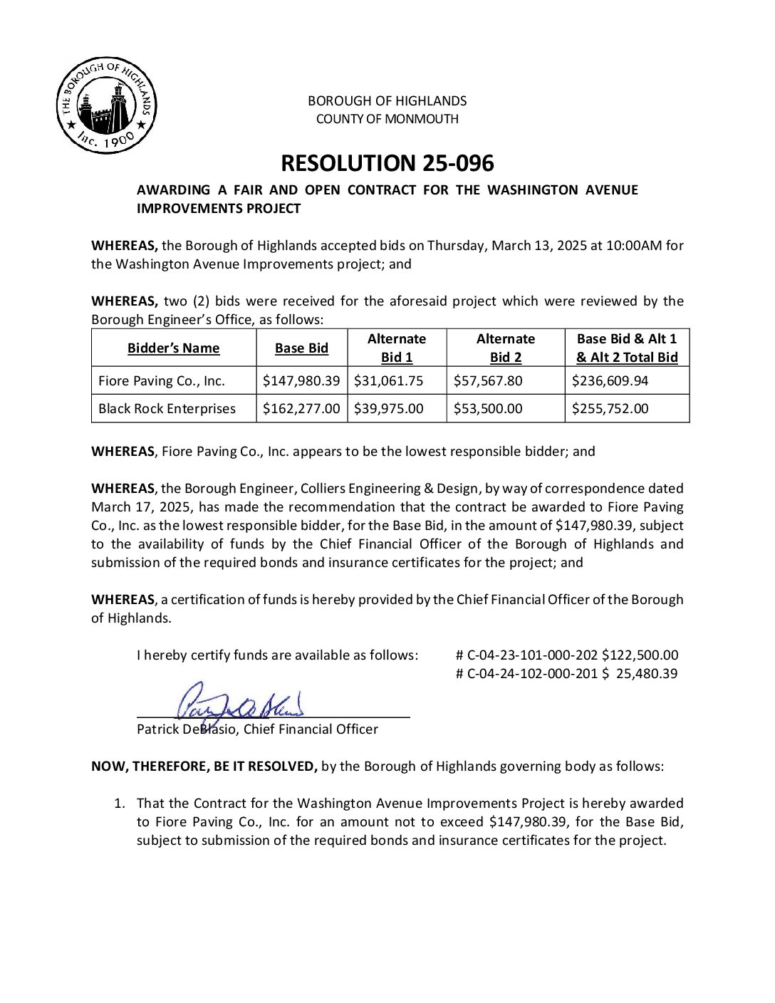 R 25 096 Award F&O Fiore Washington Ave Base Bid Only Gallery R 25 096 Award F&O Fiore Washington Ave Base Bid Only R 25 096 Award F&O Fiore Washington Ave Base Bid Only Borough of Highlands2025-12-05T07:20:15-05:0012/05/2025|Comments Off on R 25 096 Award F&O Fiore Washington Ave Base Bid Only Read More