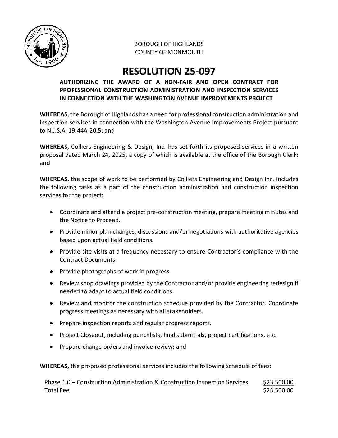 R 25 097 Award NF&O to Colliers Washington Ave Gallery R 25 097 Award NF&O to Colliers Washington Ave R 25 097 Award NF&O to Colliers Washington Ave Borough of Highlands2025-12-05T07:20:15-05:0012/05/2025|Comments Off on R 25 097 Award NF&O to Colliers Washington Ave Read More