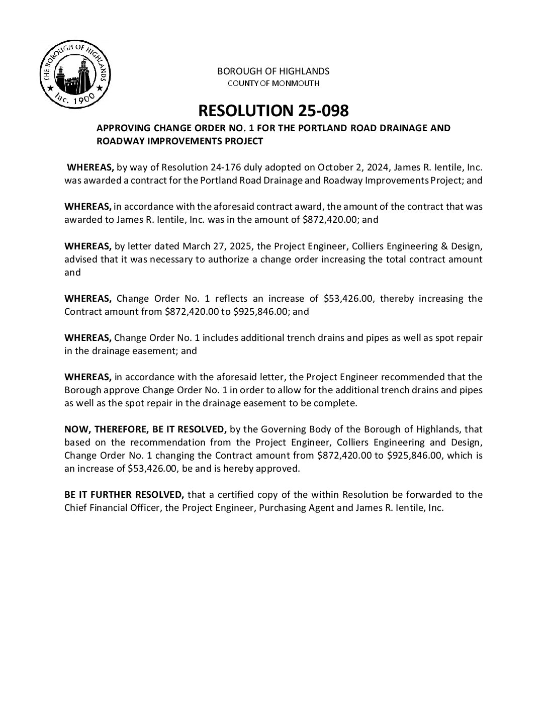 R 25 098 Approving Change Order No. 1 Portland Gallery R 25 098 Approving Change Order No. 1 Portland R 25 098 Approving Change Order No. 1 Portland Borough of Highlands2025-12-05T07:20:15-05:0012/05/2025|Comments Off on R 25 098 Approving Change Order No. 1 Portland Read More