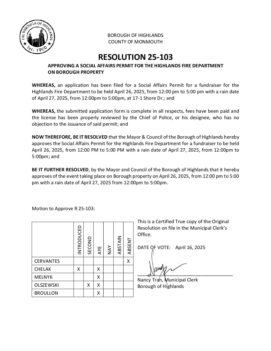 R 25 103 Approving Social Affairs Permit for HFD on Borough Property Gallery R 25 103 Approving Social Affairs Permit for HFD on Borough Property R 25 103 Approving Social Affairs Permit for HFD on Borough Property Borough of Highlands2025-12-05T07:20:15-05:0012/05/2025|Comments Off on R 25 103 Approving Social Affairs Permit for HFD on Borough Property Read More
