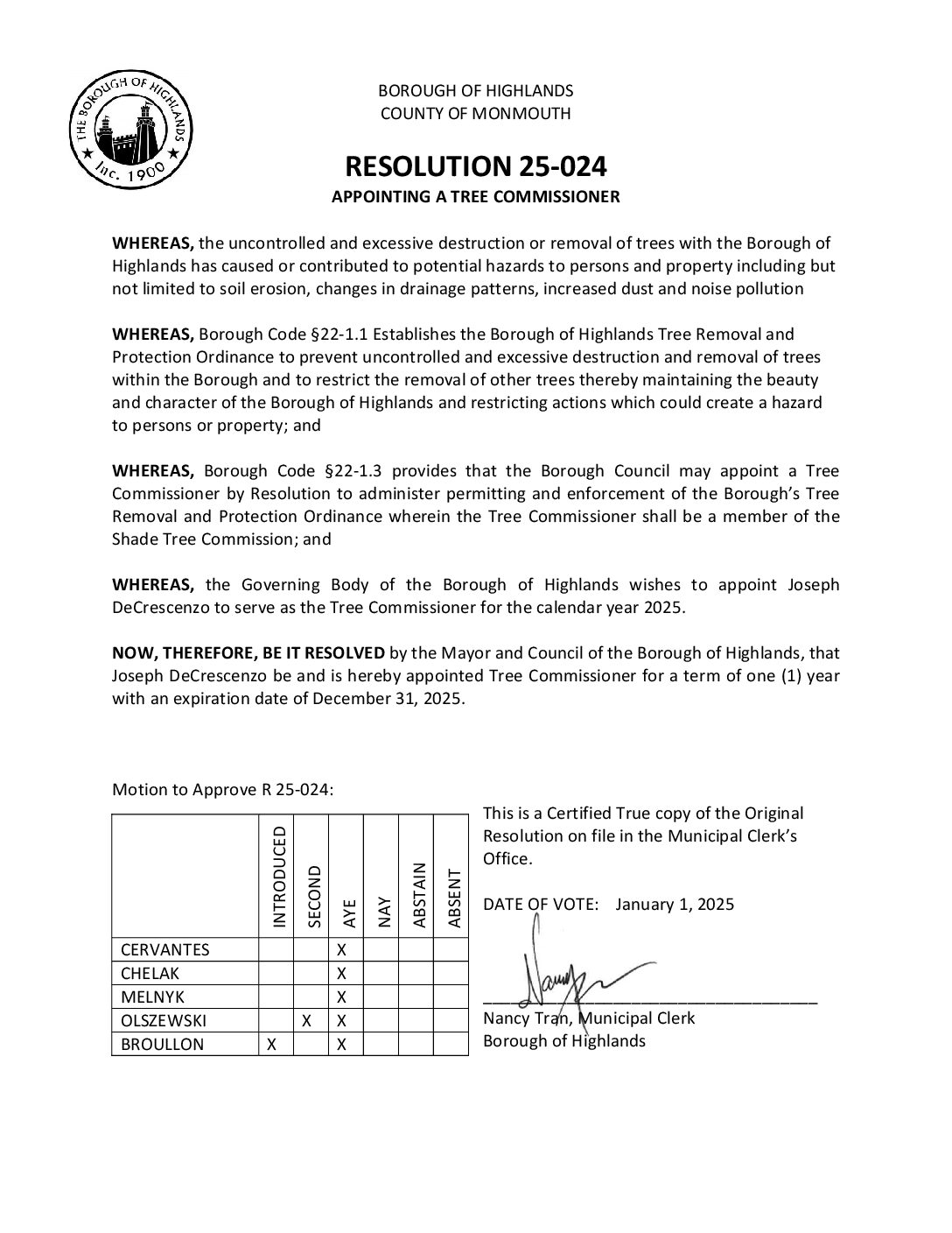 R 25 024 Appointing Tree Commissioner Gallery R 25 024 Appointing Tree Commissioner R 25 024 Appointing Tree Commissioner Borough of Highlands2025-12-05T07:20:16-05:0012/05/2025|Comments Off on R 25 024 Appointing Tree Commissioner Read More