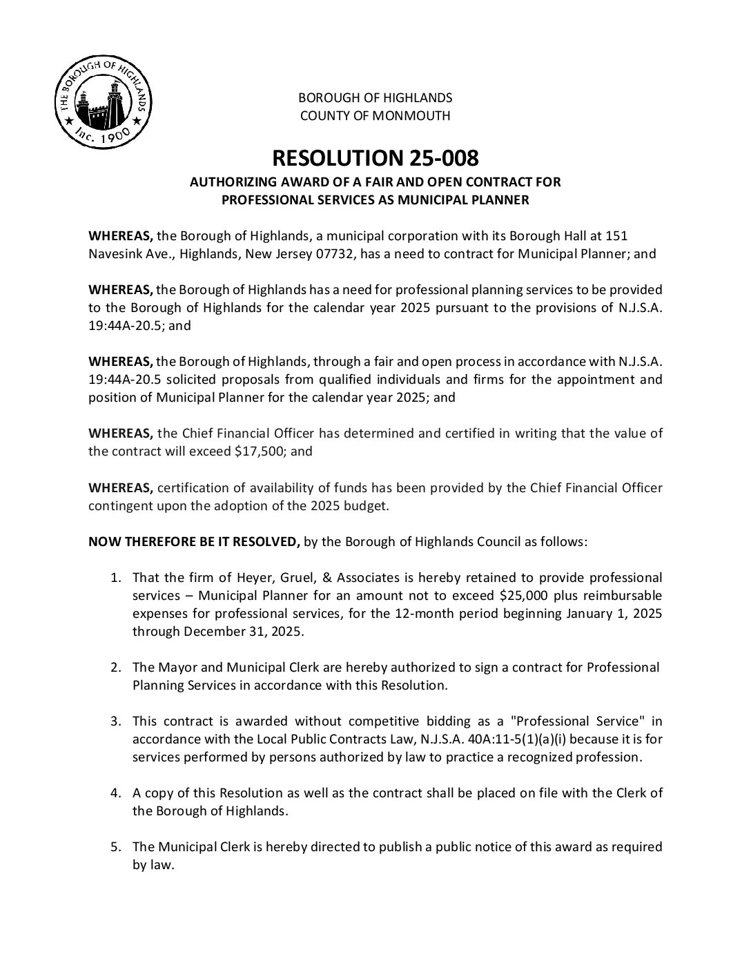 R 25 008 Appointing Municipal Planner Gallery R 25 008 Appointing Municipal Planner R 25 008 Appointing Municipal Planner Borough of Highlands2025-12-05T07:20:51-05:0012/05/2025|Comments Off on R 25 008 Appointing Municipal Planner Read More