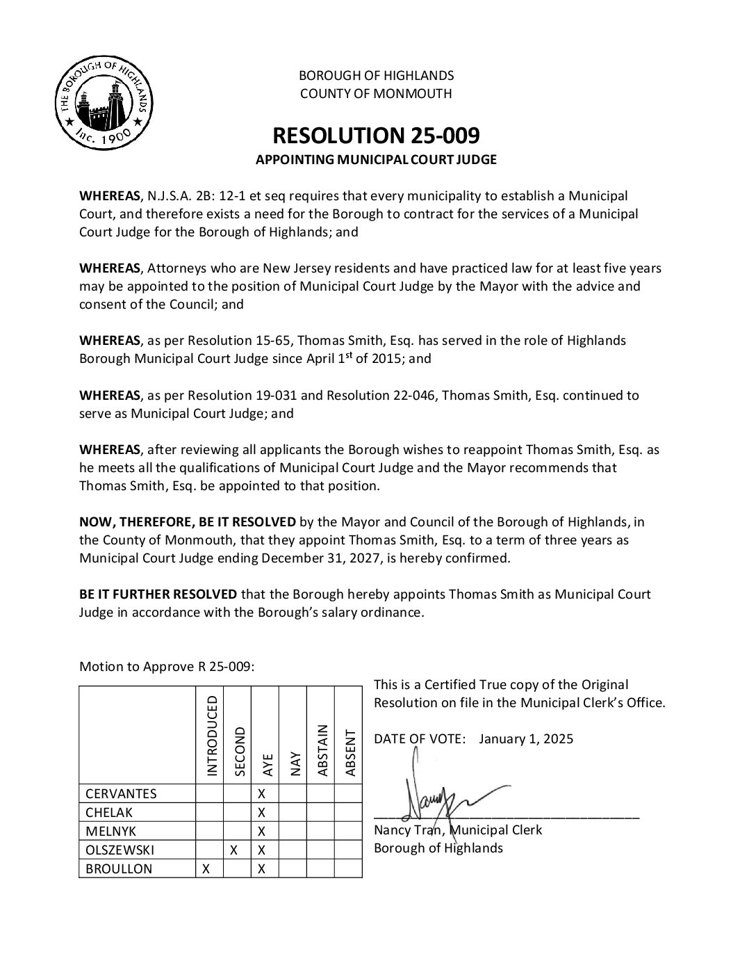 R 25 009 Appoint Municipal Court Judge Gallery R 25 009 Appoint Municipal Court Judge R 25 009 Appoint Municipal Court Judge Borough of Highlands2025-12-05T07:20:51-05:0012/05/2025|Comments Off on R 25 009 Appoint Municipal Court Judge Read More