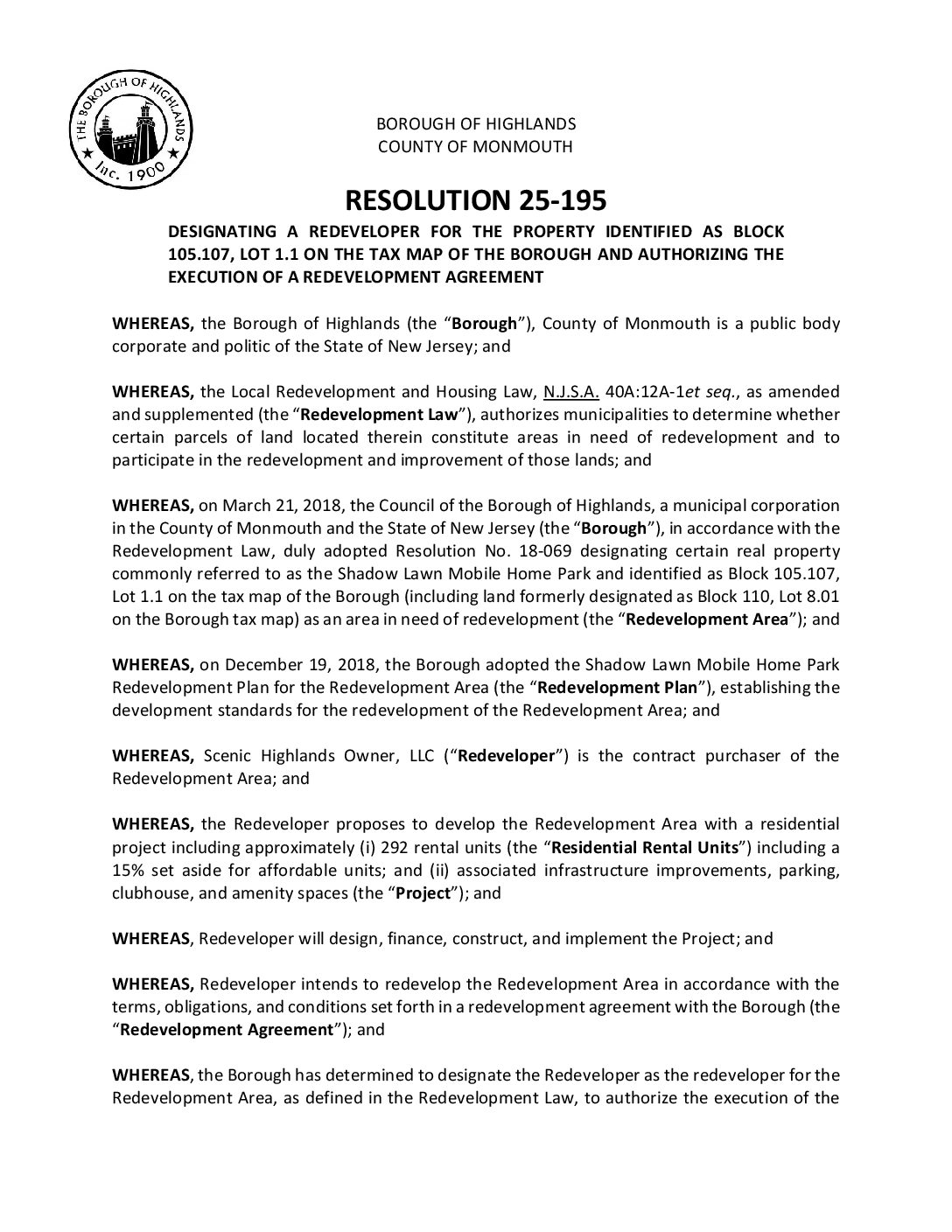 R 25 195 Designating Redeveloper and Authorizing Redevelopment Agreement Shadowlawn Gallery R 25 195 Designating Redeveloper and Authorizing Redevelopment Agreement Shadowlawn R 25 195 Designating Redeveloper and Authorizing Redevelopment Agreement Shadowlawn Borough of Highlands2025-11-25T07:57:36-05:0011/25/2025|Comments Off on R 25 195 Designating Redeveloper and Authorizing Redevelopment Agreement Shadowlawn Read More