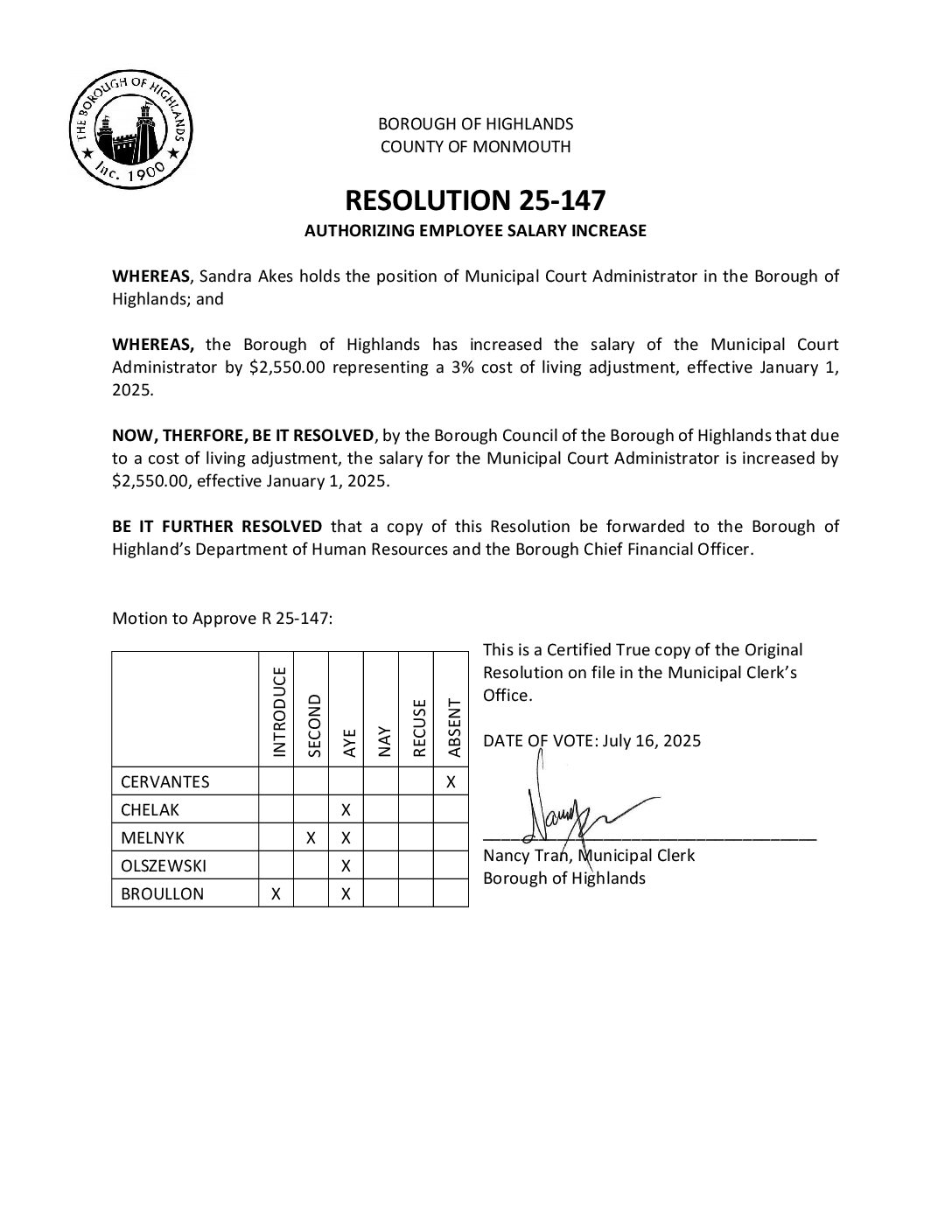 R 25 147 Authorizing Salary Increase Court Administrator Gallery R 25 147 Authorizing Salary Increase Court Administrator R 25 147 Authorizing Salary Increase Court Administrator Borough of Highlands2025-11-25T07:57:37-05:0011/25/2025|Comments Off on R 25 147 Authorizing Salary Increase Court Administrator Read More
