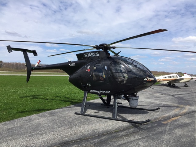 - Black, Hughes MD500 with tail registration number N748CB – see photo