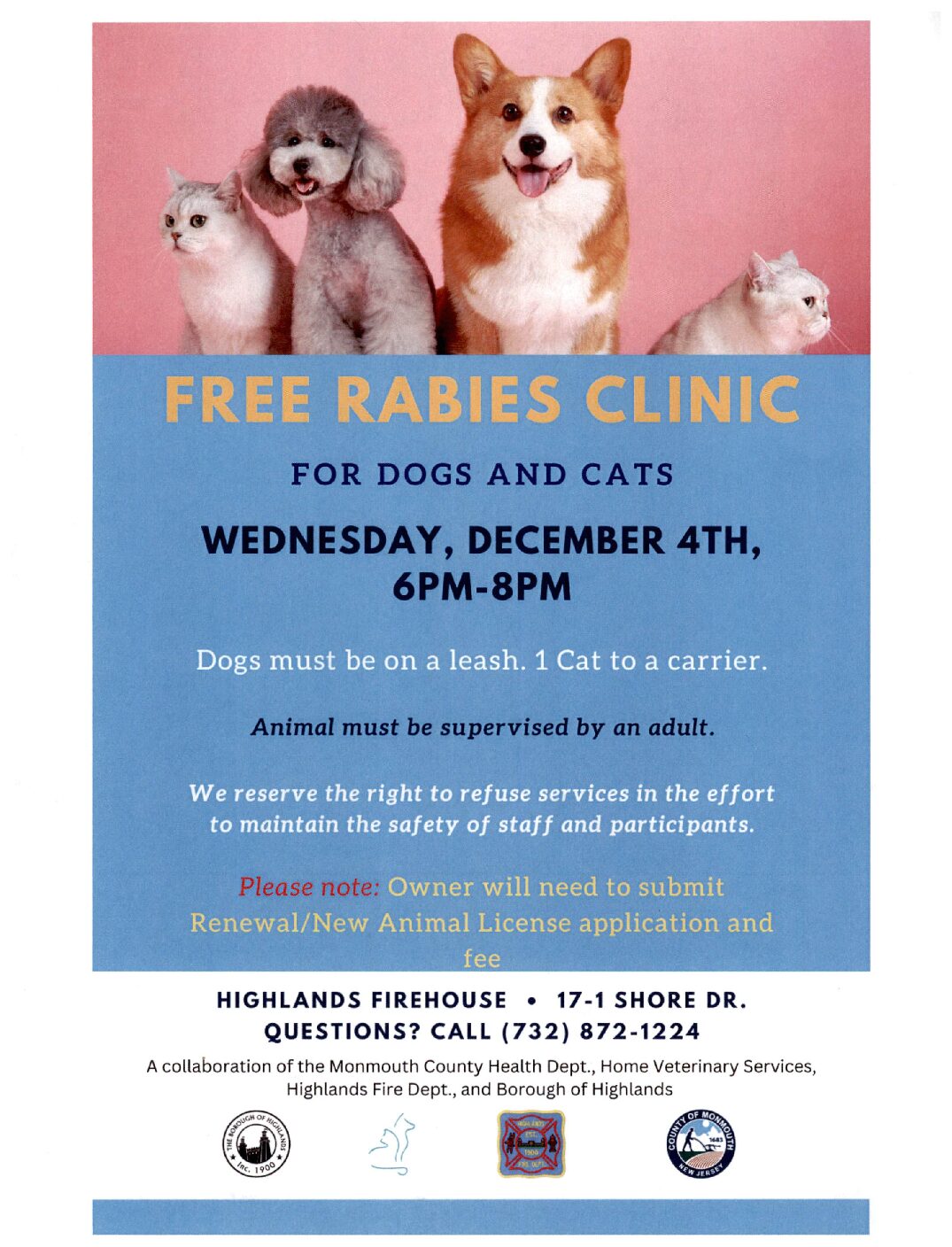 Free Rabies Clinic tonight, Wednesday, December 4th, 6pm-8pm. Highlands Firehouse, [...]