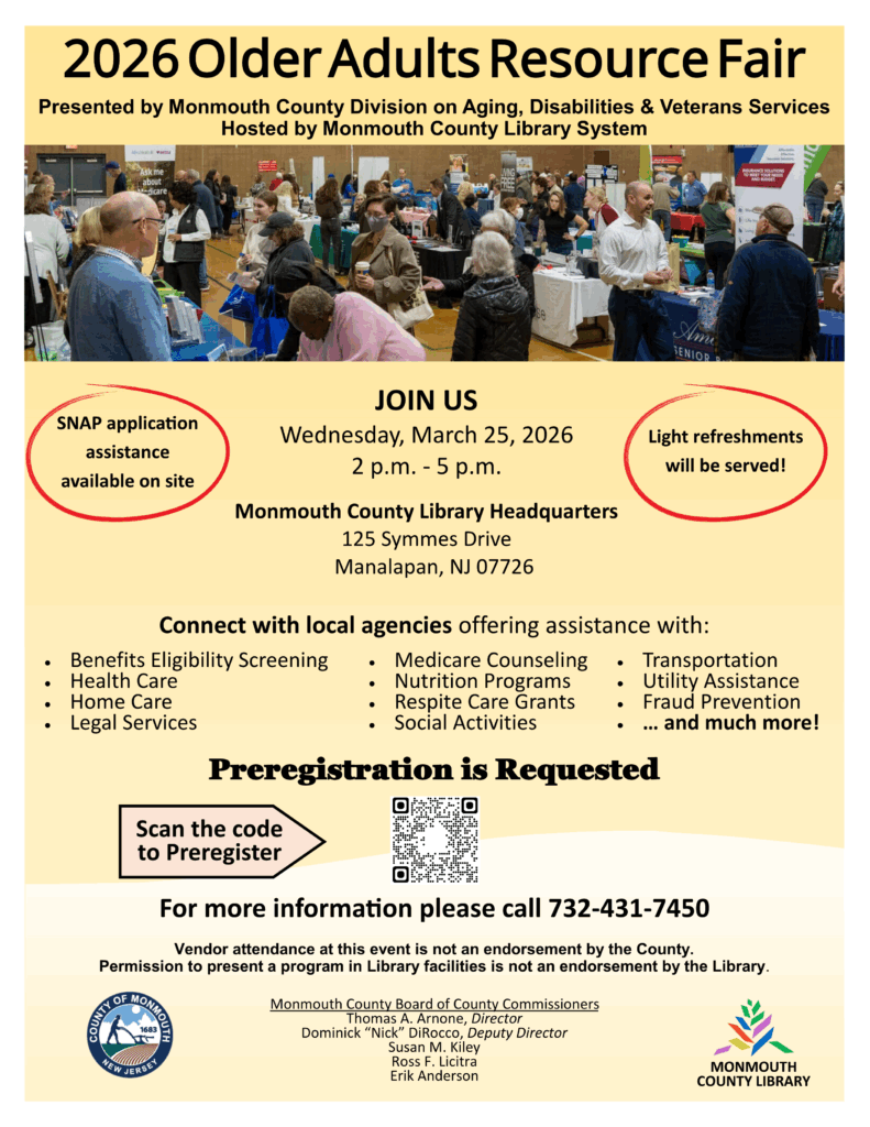 Monmouth County is hosting an Older Adults Resource Fair, a community-focused event designed to connect seniors and their families with essential services, health resources, and local support networks.