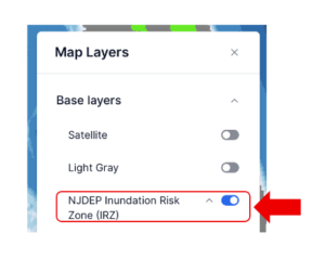 STEP 4. TOGGLE THE NJDEP INUNDATION RISK ZONE (IRZ) BUTTON TO ON