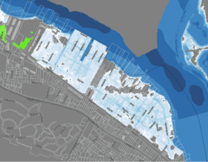 The Climate Adjusted Flood Elevation (CAFE) is a predicted limit of coastal flood hazard and storm-induced flooding exacerbated by sea-level rise by the year 2100. In tidal flood hazard areas, such as in Highlands, the REAL rule establishes a new flood elevation that adds four (4) feet to FEMA’s 100-year flood elevation, in effect increasing the elevation by which construction must be elevated to.