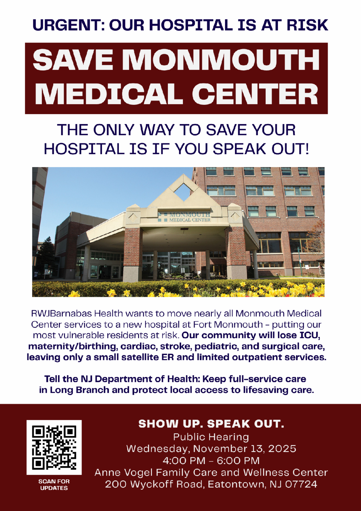 Your involvement makes a real difference. Show up. Speak out. Together, we can ensure Long Branch keeps the lifesaving hospital services our community depends on.